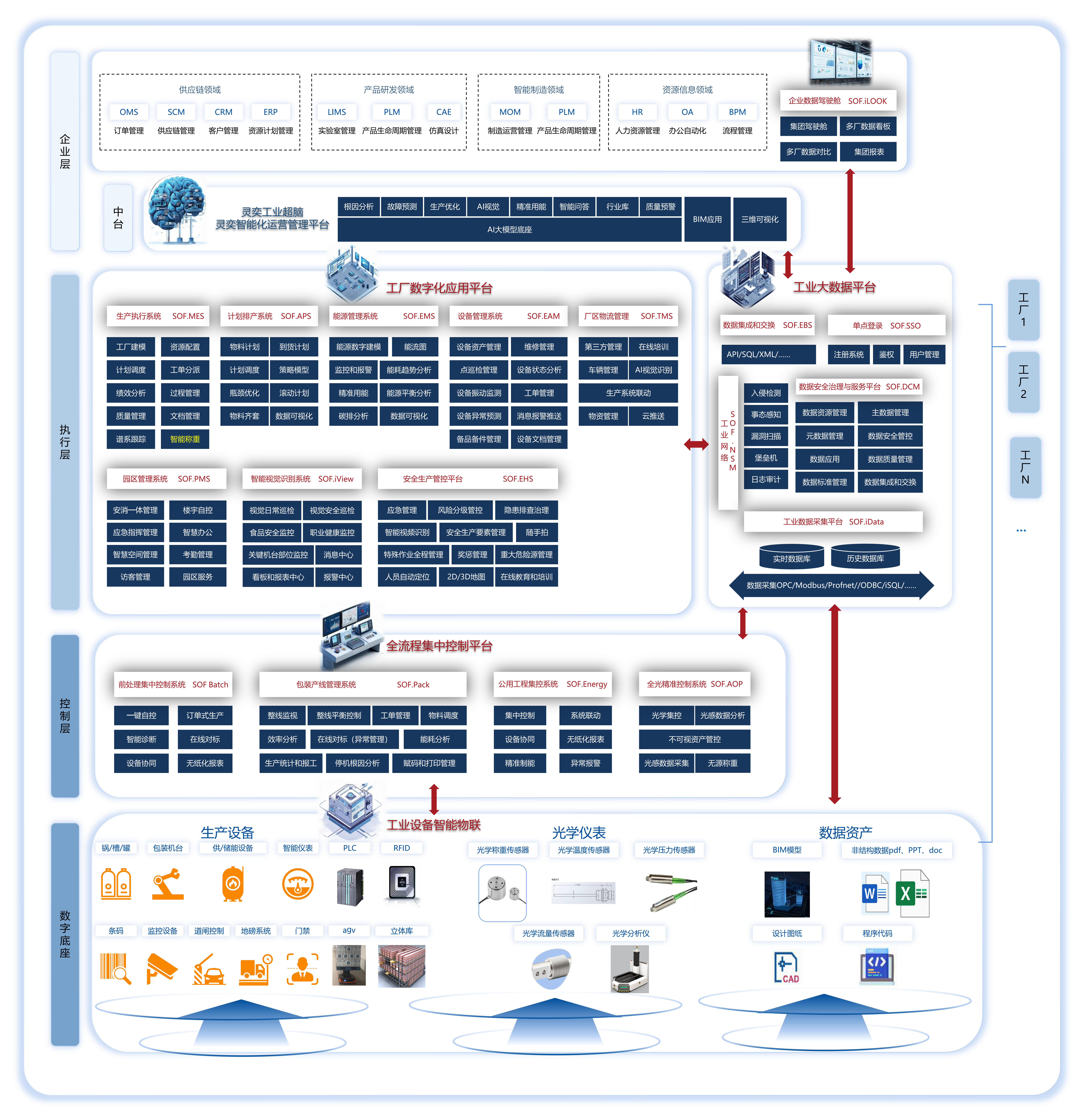 集成APS智能排产、MES生产执行系统、QMS在线质检(SPC自动预警)、EMS预测性维护、EHS风险监测、TMS物流调度及PMS园区管理系列产品,通过数据中枢打破信息孤岛,实现生产-质量-设备-安全-物流全链路数字化。